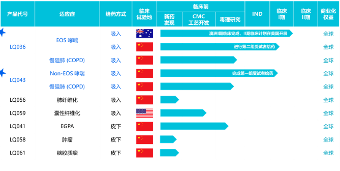 金年会诚信至上生物的研发管线中,还包括治疗肺纤维化的LQ056和治疗囊性纤维化的LQ059,同样采用吸入给药。